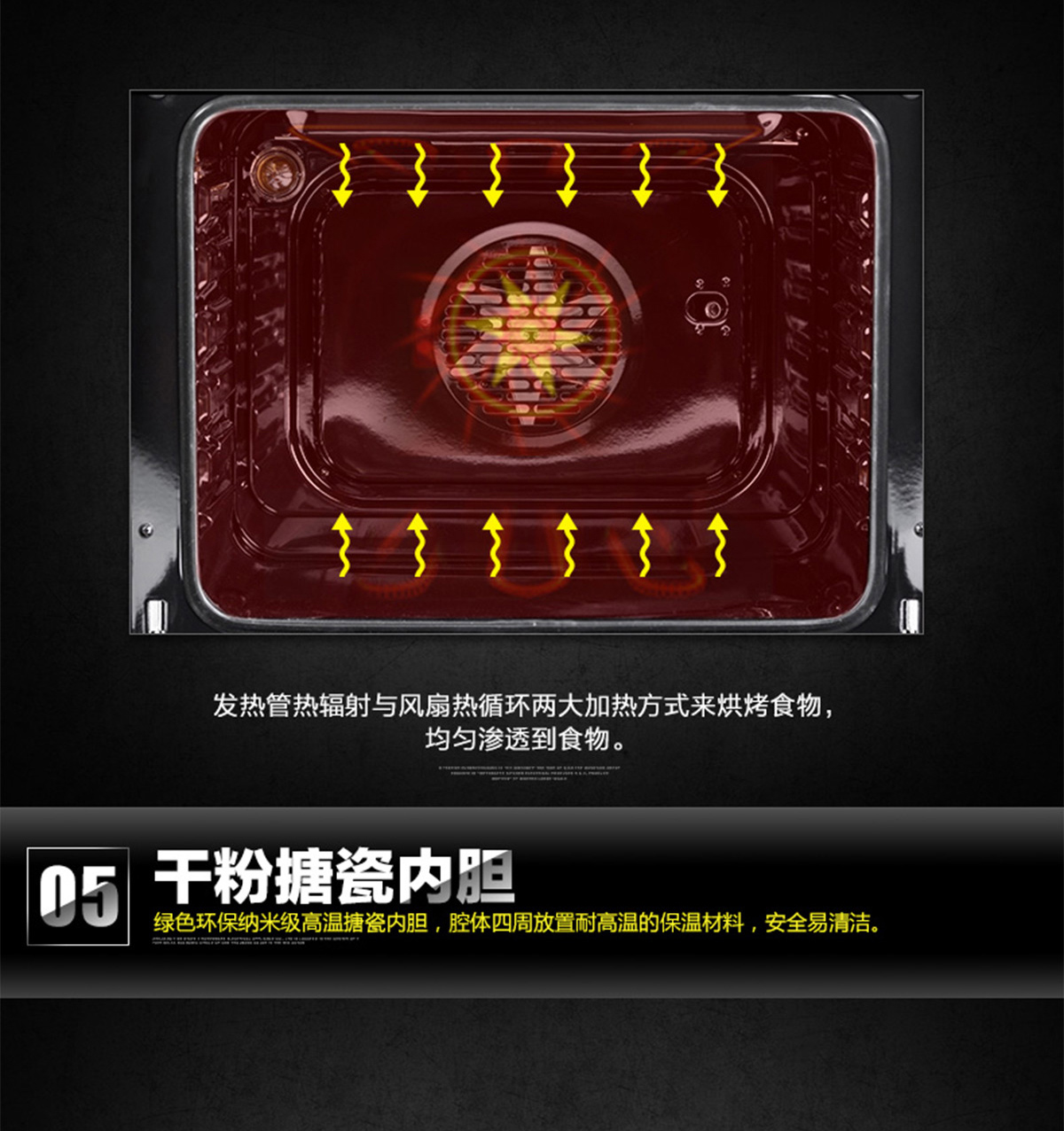 60L大容量;內(nèi)置全自動精確控溫探頭;立體循環(huán)熱風(fēng);高溫搪瓷內(nèi)膽;